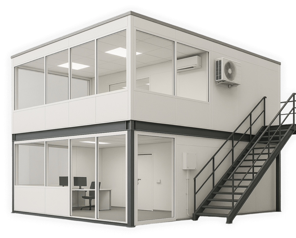 Unsere Hallenbüros schaffen professionelle Arbeitsräume mitten im Herzen Ihrer Produktion. Ob Meisterbüro, Pausenraum, Qualitätskontrolle oder Verwaltungsarbeitsplatz – wir bieten Lösungen, die Schallschutz, Komfort und Effizienz vereinen. Mit geprüften Konstruktionen, langlebigen Materialien und professioneller Montage, verwandeln wir ungenutzte Hallenflächen in vollwertige & produktive Bereiche.